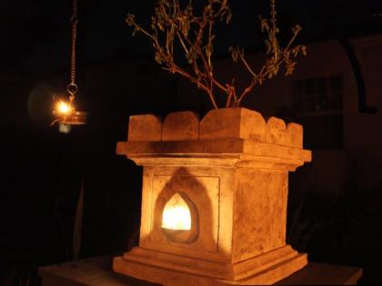तुळशीजवळ रोज सायंकाळी दिवा लावावा आणि दिव्याच्या खाली, मंगल कलशाखाली ठेवतो, तशीच धान्याची छोटीशी राशी रचावी. त्यावर दिवा ठेवावा. ते दृष्य पाहून माता लक्ष्मी प्रसन्न होते. दिव्याच्या स्वच्छ प्रकाशात ते धान्य छोट्या जीव जंतूंना मिळते आणि सत्कर्म घडते.