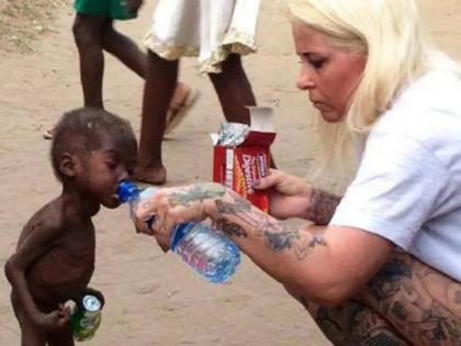 नायजेरियातील कुपोषित बालकाला पाणी देणारी समाजसेविका, माणुसकीचे उत्तम उदाहरण!
