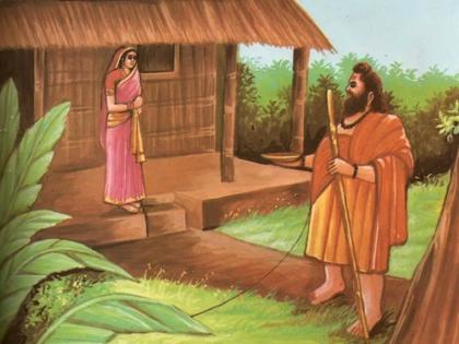 लक्ष्मण गेल्यावर रावण गोसाव्याचे सोंग घेऊन भिक्षा मागायला आला. सीता त्याला झोपडीच्या दाराआडूनच भिक्षा देऊ लागली. लक्ष्मणाने रेषेबाहेर जाऊ नको, ही सूचना तिच्या लक्षात होती. रेषा झोपडीच्या उंबरठ्याजवळ होती. रावण ती रेषा पार करू शकत नव्हता. त्याने सीतेला, `माई, बाहेर येऊन भिक्षा दे, देव तुझे भले करो.' असे म्हटले.
