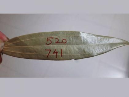 १. साहित्य: एक सुके आणि स्वच्छ तमाल पत्र (कुठूनही फाटलेले नसावे) आणि एक लाल रंगाचा पेन (लाल शाई).