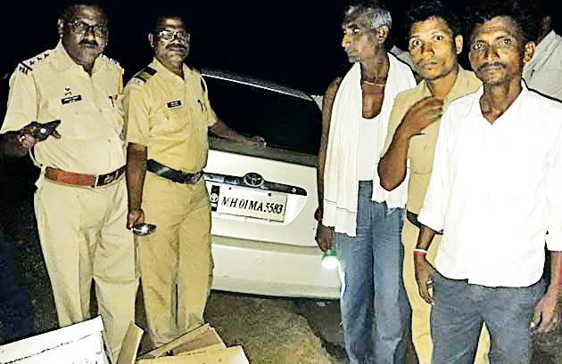 लोकमत न्यूज नेटवर्कलाखांदूर : तालुक्यातील इंदोरा येथे गस्तीवर असताना लाखांदूर पोलिसांनी गोपनीय माहितीच्या आधारावर धाड घालुन ७.७६ लाखांची दारू व अन्य मुद्देमाल जप्त केला. दोन दिवसातील ही तिसरी कारवाई असल्याने अवैध दारू विक्रेत्यांचे धाबे दणाणले आहे.गडचिरोली व चंद्रपूर जिल्ह्यात दारू बंद असल्याने गोंदिया व भंडारा जिल्ह्यातून लाखांदूरमार्गे मोठ्या प्रमाणात अवैधरीत्या दारूची वाहतूक होत असल्याची कुणकुण पोलिसांना लागली. खबºयाच्या माध्यमातून माहिती घेऊन पोलीस निरीक्षक डी. डब्लू. मंडलवार यांनी संपूर्ण तालुक्यात नाकाबंदी करून अवैधरीत्या दारू वाहतूक करणाºयांच्या मुसक्या आवळणे सुरू केले. दोन दिवसांपूर्वी कारवाई केल्यानंतर पुन्हा शनिवारला इंदोरा येथे खबरीकडून मिळालेल्या माहितीच्या आधारे कान्हाळगाव ते इंदोरा मार्गावर पोलिसांनी एका पांढºया रंगाच्या गाडीला थांबवले, मात्र गाडी न थांबता वेगाने पळ काढला, चारही मार्गावर नाकेबंदी करून गाडीचा सिनेस्टाईलने पाठलाग केला.अखेर चिखलात गाडी फसल्याने गाडीचालक व एक साथीदार गाडी सोडून जंगलात पळून गेले. गावकºयांच्या मदतीने गाडी व गाडीतील दारू लाखांदूर पोलीस ठाण्यात आणण्यात आली. इंग्रजी दारू किंमत ७ लक्ष ६६ हजार रुपये, गाडी क्र. एम एच ०१ एम ए ५५८३ किंमत ६ लक्ष, असा मुद्देलाल जप्त करण्यात आला आहे. आरोपी फरार असल्याचे पोलिसांनी सांगितले.जिल्हा पोलीस अधीक्षक विनिता शाहू यांच्या मार्गदर्शनात तसेच उपविभागीय पोलीस अधिकारी पवनी टिक्कस, यांच्या मार्गदर्शनात पोलीस निरीक्षक डी. डब्लू. मंडलवार, पोलीस हवालदार प्रेमलाल भोयर, पोलीस नायक अशोक मांदाळे, पोलीस नायक लोकेश ढोक, शिपाई प्रफ्फुल कठाने, हवालदार विष्णू खंडाते, पोलीस नायक रवींद्र मुंजमकर, शिपाई प्रमोद टेकाम यांनी यशस्वीरित्या पार पाडली.लाखांदूर तालुक्यात देशी व विदेशी दारूचे अनेक दुकाने आहेत. लगतच्या दोन्ही जिल्ह्यात दारू बंद आहे. त्यामुळे दोन्ही जिल्ह्यात जाण्याचा मार्ग लाखांदूर मधूनच आहे. अवैध दारू वाहतूक ही याच मार्गाने होत असली तरी पकडलेली दारू ही लाखांदूर तालुक्यातील नसून तालुक्याबाहेरील दुकानातील असल्याचे तपासातून उघड झाले. पुन्हा कामाला लागून तालुक्यातून अवैद्य दारू वाहतूक बंद करणार आहे.- डी. डब्लू. मंडलवार,पोलीस निरीक्षक लाखांदूर