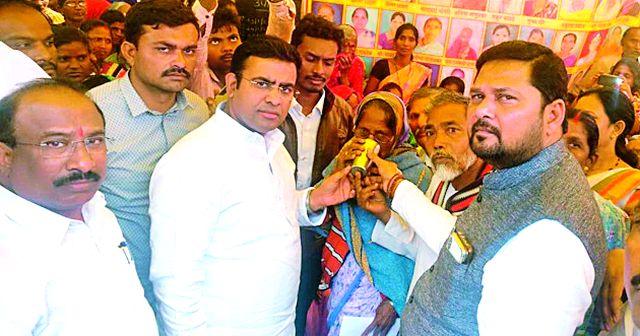 लोकमत न्यूज नेटवर्कलाखांदूर : गाव नमूना आठ नुसार आखिव पत्रिका मिळण्यात यावे याकरिता लाखांदूर येथील महिलांनी २३ जानेवारीपासून उपोषण सुरू केले होते. जोपर्यंत आमदार परिणय फुके बाळा काशिवार उपोषणस्थळी भेट देऊन मागण्या सोडविणार नाहीत तो पर्यत उपोषण सोडणार नाही, असा निर्धार उपोषणकर्त्या महिलांनी केला होता. आंदोलनकर्त्यांचा मान ठेवून दोन्ही आमदारांनी उपोषण मंडपाला भेट देऊन समस्या निकाली काढण्याचे आश्वासन दिल्यानंतर आंदोलन मागे घेण्यात आले.यावेळी आमदार परिणय फुके यांनी तहसीलदार महल्ले यांच्यासोबत चर्चा करून गाव नमूना आठ नुसार आखिव पत्रिका तयार करण्याबाबत चर्चा केली. त्यांनतर उपोषणकर्त्यांच्या समस्या ऐकल्या. वर्षभरामध्ये प्रक्रीया पूर्ण करुन आखिव पत्रिका देण्याचे लेखी आश्वासन महिलांना दिले.यावेळी उपोषणावर बसलेल्या रत्नमाला धनराज गजभिये व इतर उपोषणकर्त्या महिलांना लिंबू पाणी पाजून व पुष्पहार घालून उपोषणाची सांगता करण्यात आली.उपोषणास्थळी आमदार परिणय फुके व आमदार बाळा काशिवार बैलबंडीने यावे, असा आग्रह महिलांनी धरला होता. महिलांच्या आग्रहास्तव आमदार फुके यांनी बैलबंडीवर बसून उपोषणस्थळी पोहोचले. यावेळी दोन्ही आमदार यांच्यासोबत महामंत्री नरेश खरकाटे, विनोद ठाकरे, नुतन कांबळे, हरीश बघमारे, दिलीप चित्रिव, तहसिलदार महल्ले, पोलिस निरीक्षक मेश्राम, मुख्य अधिकारी परिहार, नगर पंचायत चे सर्व नगरसेवक, भाजपाचे पदाधिकारी उपस्थित होते.वर्षभरामध्ये आखिव पत्रिका देण्याचे आश्वासन मिळाल्यानंतर उपोषणकर्त्या महिलांनी दोन्ही आमदारांचे आभार मानले.