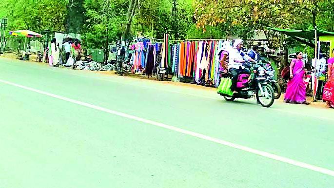 लोकमत न्यूज नेटवर्कभंडारा : शहरातून जाणाऱ्या राष्ट्रीय महामार्गावर आणि शहरातील कोणत्याही रस्त्याने गेले की व्यावसायिक अतिक्रमणांनी घातलेला विळखा निदर्शनास येतो. १५ हजार रुपयांपर्यंतच्या सोफासेटपासून ते महागड्या खेळण्यांपर्यंत सारेकाही फुटपाथवर विक्रीसाठी उपलब्ध आहे. एरव्ही पोटची खळगी भरण्यासाठी फुटपाथवर चहाची टपरी चालविणाऱ्याला पालिकेचा अतिक्रमण विभाग सुखाने जगू देत नाही. दुसरीकडे मात्र हजारो रुपयांचा माल रस्त्याच्या कडेला फुटपाथवर ठेवून उघडपणे विकला जात असताना अतिक्रमण विभागाचे याकडे लक्ष कसे जात नाही, असा प्रश्न निर्माण झाला आहे.भंडारा शहरातील रस्ते अतिक्रमणमुक्त व्हावेत ,यासाठी जिल्हा प्रशासनाने अतिक्रमण हटाव मोहीम हाती घेतली होती. या मोहिमेला काही प्रमाणात यश आले. मात्र, ही मोहीम आता बंद पङली आहे. सध्या शहरातील सर्व मुख्य रस्त्यांवर व्यावसायिक अतिक्रमणांचा बोलबाला आहे. बसस्थानक मार्गावर दुतर्फा विक्रेत्यांची गर्दी पाहायला मिळते. राष्ट्रीय महामार्गावर विश्रामभवनासमोर सोफासेट, आलमारी, टेबल, बांबूपासून तयार केलेले फर्निचर, चिनीमातीपासून तयार केलेल्या सजावटीच्या वस्तू, काचेचे झुंबर, गृहोपयोगी वस्तू सर्वकाही रस्त्याच्या कडेला विकले जात आहे. शोरूमपेक्षा काहीशी स्वस्त दरात या वस्तू मिळत असल्यामुळे ग्राहकही येथून खरेदी करीत आहेत.पहाटे ट्रकने येतो मालरस्त्याच्या कडेला लागलेल्या या दुकानांमध्ये महागड्या वस्तू विकल्या जातात. एक व्यक्ती २४ तास या दुकानात असते. ती रात्री या मालाजवळच फुटपाथवर झोपते. दिवसभरात विकलेल्या मालाचा मालकाला आढावा दिला जातो. त्यानंतर आवश्यक असलेला माल पहाटे ट्रकमध्ये टाकून विक्रीच्या ठिकाणापर्यंत पोहोचविण्याचा नित्यक्रम आहे.वाहतुकीचे तीनतेरारस्त्याच्या कडेला लागणाऱ्या या मोठमोठ्या दुकानांमुळे वाहतुकीला अडथळा निर्माण होत आहे. नागरिक या वस्तू पाहण्यासाठी, खरेदी करण्यासाठी रस्त्याच्या कडेला लागलेल्या या दुकानांमध्ये गर्दी करतात. स्वत:ची वाहने रस्त्यावर उभी करतात. यामुळे रस्त्याने जाणाऱ्या वाहतुकीला अडथळा निर्माण होतो.वाहतूक पोलिसांचेही दुर्लक्षरस्त्याच्या कडेला मोठमोठी दुकाने लावून वाहतुकीला अडथळा निर्माण करणाऱ्यांवर वाहतूक पोलीस कारवाई करू शकतात. मात्र, वाहतूक पोलिसही याकडे लक्ष देताना दिसत नाहीत. पालिकेच्या अतिक्रमण विभागासह वाहतूक पोलिसही या अतिक्रमणांचा मलिदा खात नाही ना, असा संशय यानिमित्ताने येऊ लागला आहे.