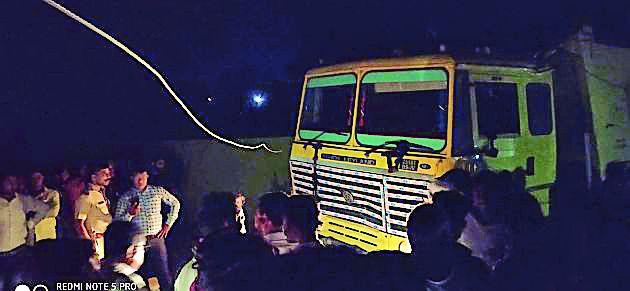 लोकमत न्यूज नेटवर्कपवनी : रेतीची वाहतूक करणारा भरधाव टिप्पर वीज खांबाला धडक देत बारमध्ये शिरल्याची घटना पवनी येथे सोमवारी रात्री ९.३० वाजता घडली. या अपघातात दोन जण जखमी झाले.वैनगंगा नदीवर रेतीचे मोठ्या प्रमाणात उत्खनन सुरु आहे. रात्री टिप्पर क्रमांक एमएच ४० बीजी ६६९० रेती घेऊन जात होता. पवनी नागपूर मार्गावर स्वाती बार समोर टिप्पर अनियंत्रीत झाला. एका वीज खांबाला धडक देऊन टिप्पर थेट बारमध्ये शिरला.यावेळी बारमध्ये बसलेले दोन जण जखमी झाले. तर पवनी शहरातील वीज पुरवठाही खंडीत झाला होता.