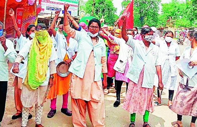 लोकमत न्यूज नेटवर्कभंडारा : कोरोना महामारीच्या कठीण काळात जिवाची पर्वा न करता कोरोना पॉझिटिव्ह रुग्णांची सेवा करणाऱ्या कंत्राटी नर्सेसना पुनर्नियुक्ती, नवीन भरती व रिक्त जागेवर कंत्राटी नर्सेसची थेट नियुक्ती करावी तसेच एएनएमला प्राधान्य तसेच नियुक्त होईपर्यंत बेरोजगारी भत्ता इत्यादी मागण्यांसाठी जिल्हा कचेरीसमोर कंत्राटी नर्सेसचा ताटी-वाटी ठोको व भीक मागो आंदोलन करण्यात आले.आंदोलनाचे नेतृत्व कंत्राटी आरोग्य कर्मचारी युनियनचे अध्यक्ष हिवराज उके, कंत्राटी नर्सेस शिष्टमंडळाच्या सचिव मनीषा तीतिरमारे, लोकशाही आघाडीचे अचल मेश्राम यांनी केले. कंत्राटी नर्सेसना तीन महिन्यांच्या सेवेनंतर १३ जुलैपासून कामावरून कमी करण्यात आले. तेव्हापासून मंत्र्यांपासून आमदार, खासदार व सर्व संबंधित अधिकाऱ्यांना भेटून निवेदन देऊनही काहीच उपयोग झाला नाही. साधे पाठपुराव्याची पत्रही देऊ शकले नाही. जिल्हाधिकारी संदीप कदम यांची शिष्टमंडळासोबत चर्चा झाली. त्यात मागण्यांबाबत शासनाकडे लगेच पाठपुरावा करतो व तसे तुम्हास पत्र देतो, तुम्ही आंदोलन मागे घ्या, असे ते म्हणाले.जोपर्यंत शासन प्रशासनाची भूमिका स्पष्ट होत नाही व तसे लिखित पत्र मिळत नाही. तोपर्यंत आंदोलन चालू राहील. तसेच आंदोलनाची दखल घेत आरोग्य मंत्र्यांसोबत बैठक घेण्याची व्यवस्था करावी, अशी मागणी आहे. यावेळी हिवराज उके, अचल मेश्राम, मनीषा तीतिरमारे, नंदा कोसरकर, सीमा चौधरी, ऋतुजा साठवणे, उमिजा बुरडे, साधना आगाशे, माया बिसणे, अश्विनी शहारे, स्नेहल वाघमारे, ज्योती बारस्कर, पवित्रा मेश्राम, माधुरी पवारे, पल्लवी झंझाड, ज्योती कोडवते, मोनिका धोटे, कविता कायते, शीतल निर्वाण, छबूताई उके, भाग्यश्री शेंडे, संगीता करसायन, शुभांगी खरोले, रिता मेश्राम, वाल्मीक नागपुरे, गणेश चिचामे, रत्नाकर मारवाडे, प्रकाश उईकेे इत्यादींचा समावेश होता.