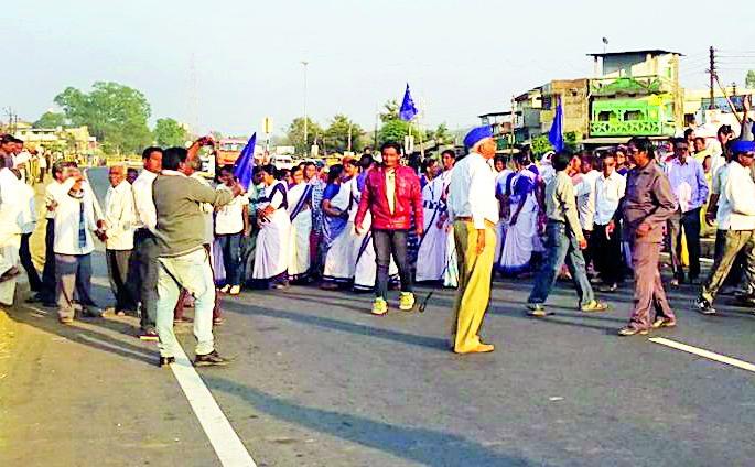 साकोली : येथे नगर परिषदेसमोर निषेध मोर्चाचे आयोजन करण्यात आले. मोर्चेकºयांनी राष्ट्रीय महामार्ग अडविला होता. यावेळी शिवकुमार गणवीर, कैलाश गेडाम, विकास मेश्राम, जि.प.सदस्य नेपाल रंगारी, नगराध्यक्ष धनवंता राऊत, राकेश भास्कर, निकेत घरडे, शब्बीर पठाण, अ.शि. रंगारी, अॅड.खोब्रागडे, रमेश हरडे, कौशल्या नंदेश्वर, शालू नंदेश्वर यांच्यासह आंबेडकरी बांधव उपस्थित होते. सानगडीत बंदचे नेतृत्व चुन्नीलाल वासनिक, नरेश बेलेकर, केवलचंद कुडवे, जि.प.सदस्या रेखा वासनिक, सुरेखा मेश्राम, पौर्णिमा बेलेकर यांनी केले. बाम्पेवाडा येथे सरपंच नैना चांदेवार, यशवंत कठाणे, कुंभलकर, जांभुळकर, वघारे, रेखा रामटेके, हरिदास बांबोडे, प्रमोद गजभिये, मुकेश गणवीर, दिलीप इलमकर, भागवत जांभुळकर, चुडामन मडामे, माणिक मडामे, आनंदराव शहारे, मडामे यांच्यासह समता सैनिक दलाच्या सदस्य रॅलीत सहभागी झाले होते. वांगी व गोंडउमरी, चांदोरी, उसगाव, सोनेगाव, पळसपाणी, किन्ही येथे रॅली काढण्यात आली होती. या रॅलीत केदार नाकाडे, कमलेश मडकवार, आशिष ठाकरे, राहुल ठोणे कार्यकर्ते सहभागी होते.