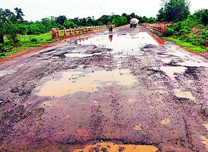 आंतरराज्यीय मार्गावरील पूल झाला खड्डेमय