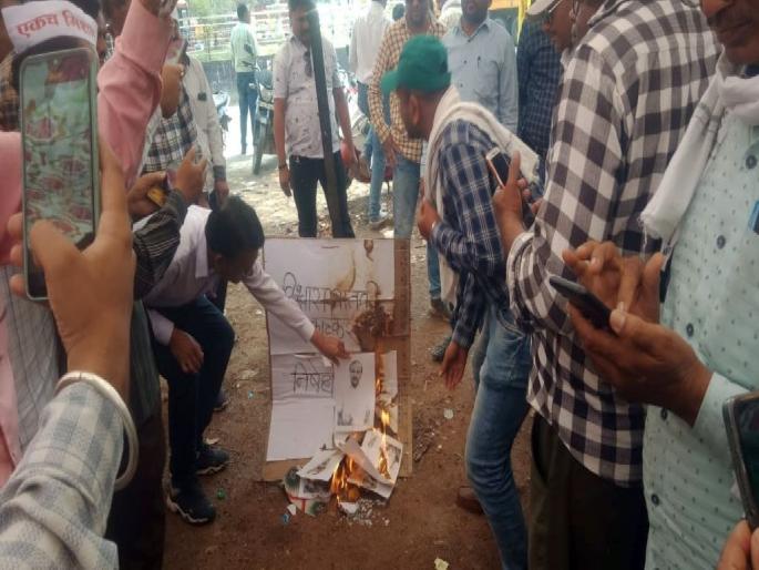 भंडारा : सोमवारी मुख्य्रंत्र्यांशी झालेल्या चर्चेनंतर कर्मचारी संघटनेच्या राज्य समन्वय समितीचे निमंत्रक विश्वास काटकर यांनी संप मागे घेतल्याची घोषणा केली होती. या निर्णयाचा भंडारा जिल्ह्यात विरोध करीत मंगळवारी संपकरी कर्मचाऱ्यांनी काटकर यांच्या प्रतिमेला जोडे मारून दहन केले. तसेच घोषणाबाजी केली.