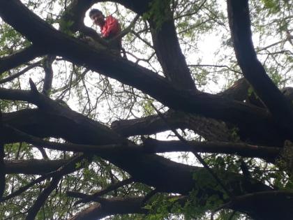 बाभळीच्या झाडावरून वनमजुराची गस्त