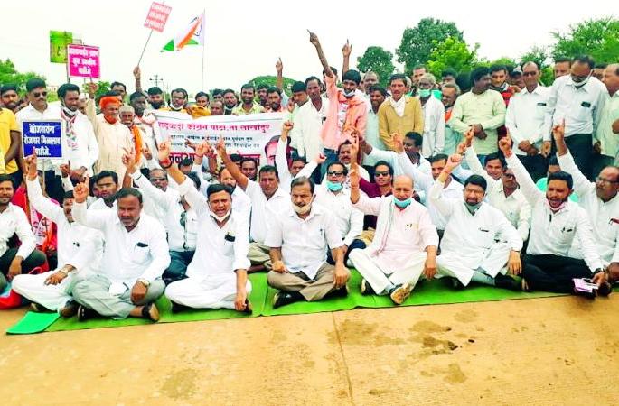 लाेकमत न्यूज नेटवर्कलाखांदूर : तालुक्यातील दहेगाव येथील गत ३० वर्षांपासून बंद असलेली कायनाईट खाण सुरू करण्याच्या मागणीसाठी गुरुवारी लाखांदूर तालुका राष्ट्रवादी काँग्रेसच्या वतीने बारव्हा येथे चक्का जाम आंदोलन करण्यात आले. यात शेकडो नागरिक सहभागी झाले होते. या आंदोलनाचे नेतृत्व माजी आमदार राजेंद्र जैन यांनी केले.यावेळी राष्ट्रवादी काँग्रेसचे जिल्हाध्यक्ष नाना पंचबुद्धे, जिल्हा बँकेचे अध्यक्ष सुनील फुंडे, धनंजय दलाल, विजय सावरबांधे, हेमकृष्ण वाडीभस्मे, अतुल परशुरामकर, तालुकाध्यक्ष बालू चुन्ने, मोहन राऊत, राकेश राऊत, कल्पना जाधव, देविदास राऊत, सूरज मेंढे, सुनीता बिसेन, गीता लंजे, शकुंतला भैय्या, उषा झोडे, राजश्री मालेवार, वंदना गाकरे, निशा बगमारे, नरेश दिवठे, मिलिंद डोंगरे, बबन पिलारे, संतोष गोंधळे, गोविंदराव बरडे, अमोल बिडवाईक, जिकरीया पठाण, शंभू नैताम, विजय फुंडे, धनराज वासनिक, निवृत्ती ढोरे, रोषण बनकर सहभागी झाले हाेते. आंदोलनस्थळी जिल्हा खणीकर्म अधिकारी गजभीये यांना निवेदन देऊन कायनाईट खाण सुरू करण्यासंबंधाने केंद्र सरकारकडे आवश्यक कारवाईसाठी निवेदन देण्यात आले.