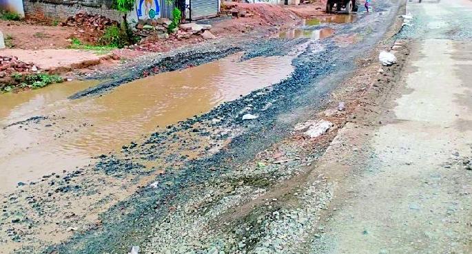 राहुल भुतांगे ।लोकमत न्यूज नेटवर्कतुमसर : नाकाडोंगरी - तुमसर राज्यमार्ग क्रमांक ३५६ वरील चिचोली येथे गावांतर्गत सिमेंट काँक्रेटचा रस्ता व बाजूला नालीचे बांधकाम अपूर्ण अवस्थेत आहे. त्यामुळे वाहतूकीसाठी एकेरी मार्गाचा उपयोग केला जात आहे. मात्र त्या एकेरी रस्त्याची अक्षरश: चाळण झाली आहे. पावसाळ्यात खड्ड्यात पाणी साचत असल्याने खड्डे किती खोल आहेत याचा अनुमान लागत नसल्याने वाहन खड्ड्यात आपटली जात असून भविष्यात मोठी प्राणहानी होण्याची शक्यता नाकारता येत नाही.कोट्यवधी रुपये खर्च करून नाकडोंगरी-तुमसर राज्यमार्गाचे नूतनीकरण करण्याचे काम वर्षभरापासून संथगतीने सुरू आहे. गावांतर्गत सिमेंटीकरण व गावाबाहेर डांबरीकरण असे या कामाचे स्वरूप आहे. राज्यमार्गावरील मेहगाव, मिटेवाणी येथे सिमेंटिकरणाचे काम काही प्रमाणात अधिक झाले आहे. मात्र चिचोली येथे केवळ एका बाजूने सिमेंटिकरण झाले व नालीचे बांधकाम झाले आहे. उर्वरित भागात 'पेव्हर ब्लॉक' चे कामे अजूनही अर्धवट आहे, तर कुठे सिमेंट रस्त्यावर गिट्टी अजूनही तशीच पडली आहे. त्यामुळे चारचाकी, दुचाकी वाहनधारकांना कच्या एकेरी मार्गाचा उपयोग वाहतुकीसाठी करावा लागत आहे. या राज्यमार्गावरून मॅग्निज व रेतीची ओव्हरलोड वाहतूक २४ तास सुरू असते. त्यामुळे रस्त्याची अक्षरश: चाळण झाली आहे. त्याचबरोबर या रस्त्यावरुन दोन वाहने जाण्यास मोठी कसरत करावी लागते. परंतु आतापर्यंत सदर बांधकामाच्या कंत्राटदाराने त्या ठिकाणी ना फलक लावले ना कामगार उभे ठेवत आहे. परिणामी बरेचदा वाहतुकीस अडथळा निर्माण होत असते. त्यातल्या त्यात आता पावसाळा सुरू झाल्याने चाळण झालेल्या रस्त्यात पाणी साचून राहते. त्यामुळे दुचाकी व चारचाकी वाहन धारकांना खड्ड्याचा अंदाज बांधता येत नसल्याने दुचाकी व चारचाकी खड्ड्यात आपटते. त्यामुळे वाहन चालकाचे स्टेअरिंगवरून नियंत्रण सुटून मोठा अपघात घडण्याची व मोठी प्राणहानी होण्याची शक्यता नाकारता येत नाही. कंत्राटदाराने येथे सर्व सुविधेसह वाहतुकीस योग्य रस्ता तयार करण्याची मागणी डॉ. सचिन बावनकर व नागरिकांनी केली आहे.