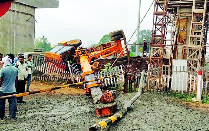 निर्माणाधीन उड्डाणपूलावरुन क्रेन बकेट रेल्वे फाटकावर कोसळली