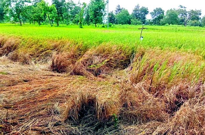 भंडारा जिल्हा हा प्रमुख भात उत्पादक जिल्हा आहे. मोठ्या प्रमाणात धान शेती केली जाते. मात्र अलिकडे काही वर्षांपासून शेतकऱ्यांना विविध संकटांचा सामना करावा लागत आहे. यंदाही शेतकऱ्यांपुढे संकटाची मालिका दिसत आहे. सुरुवातीला पावसाने दडी मारली तर हलका धान काढणीला आला असताना अतिवृष्टी झाली. यातून सावरत नाही तोच आता रसशोषक तुडतुड्याचे धानावर आक्रमण झाले आहे. बुंध्यातून रस शोषून घेत असल्याने धान पूर्णत: उद्ध्वस्त होत आहे. तुडतुड्याचे आक्रमण झाले की धान निसवत नाही आणि धान निसवला तर दाणा भरत नाही. त्यामुळे धानाचे अक्षरश: तणस होते. लाखांदूर, लाखनी, पवनी तालुक्यात ३० ते ३५ टक्के क्षेत्रावर तुडतुड्याचा प्रादुर्भाव झाला असून धानपीक पिवळे झाले आहे.