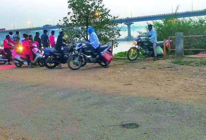 मात्र दाेन ते तीन दिवसांपासून या नदीपुलावरील दाेन्ही बाजुकडील लाेखंडी रॅली नसल्याचा फायदा दुचाकीस्वार उचलत आहे. अगदी दाेन फुट अंतरावर रॅलींगच्या बाजूला कच्चा रस्ता आहे. याच रस्त्यावरुन कठडा ओलांडत जुनापुलावरुन वाहतूक सुरु आहे.