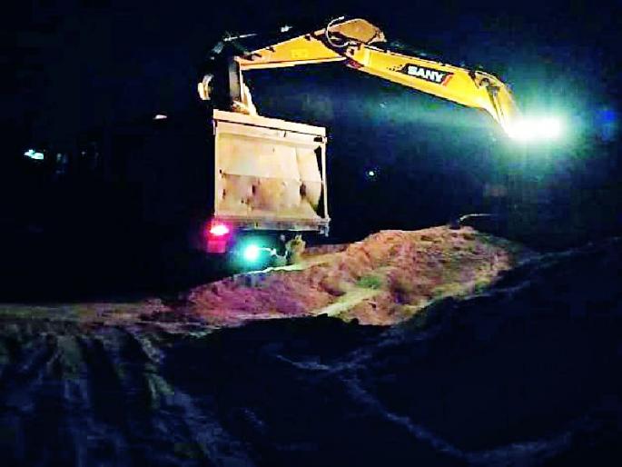 रात्रीच्या अंधारात घाटांवर रेतीचे 'डम्पिंंग'