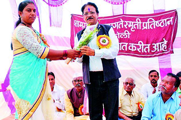नवनियुक्त सरपंच संगिता घोनमोडे यांनी पाहुण्यांचे स्वागत करीत गावविकासाकरिता कटिबध्द असून सर्वांचे सहकार्य अपेक्षीत असल्याचे प्रतिपादन केले. गावातील सेवानिवृत्त कर्मचाºयांचा सत्कार ना. राजकुमार बडोले व हभप चन्ने महाराज यांनी केले.