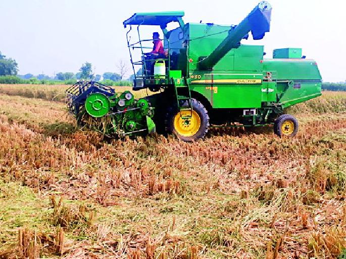 धान कापणीसाठी शेतकऱ्यांची पसंती हार्वेस्टरला