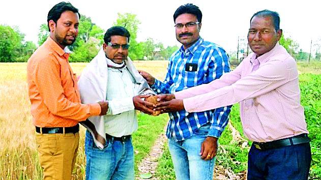 मुखरु बागडे।लोकमत न्यूज नेटवर्कपालांदूर (चौ.) : एकाच पिकाच्या मागे न लागता विविध पिके पिकवून शेतीत आमुलाग्र बदल अपेक्षित असणारे शेतकरी दुर्मिळच. अशाच दुर्मीळतेत ४० एकरात विविध पिके लावून कमी पाण्यात उत्कृष्ट गहू पिकविण्याचा मान लाखनी तालुक्यातील वाकलचे सुखराम मेश्राम यांना मिळाला आहे. कृषमित्र, कृषी पदवीधर प्रशांत जांभुळकर, ज्येष्ठ शेतकरी दामाजी खंडाईत, कृषीतज्ज्ञ यशवंत गौरे, देवी पटले यांनी त्यांना थेट त्यांच्याच बांधावर जाऊन शाल, श्रीफळ व पुष्पगुच्छाने सन्मानित केले. यावेळी परिसरातील शेकडो शेतकरी उपस्थित होते.चुलबंद खोऱ्यात पाण्याची मुबलकता असली तरी एप्रिल, मे महिन्यात भूजल पातळी संकटात असते. त्यामुळे पाणी पातळी अभ्यासून धानाऐवजी कमी पाण्याची पिके घेतली जातात. सुखराम मेश्राम यांनी गहू, हरभरा, पोपट, धान, तुर आदी पिके निवडत संपूर्ण शेती उत्पादीत केली. कोणत्याच पिकाचे प्राथमिक टप्प्यातले ज्ञान सुखरामजी यांना आहे. नियमितपणे कृषी कार्यालयाशी संपर्कात राहून अधिक ज्ञान जोपासण्याची जिज्ञासा कायमस्वरुपी त्यांच्यात असल्याने इतर शेतकरी त्यांचा आदर्श जोपासतात. शेतीला दुग्ध व्यवसायाची जोड निर्माण करून बेरोजगारीला बाजूला करीत स्वत: रोजगार निर्माते झाले. दैनंदिन १०-१५ मजुरांना काम मिळाले आहे. पत्नी कुसुमबाई त्यांना सहकार्य करीत असून मजूरवर्गांच्या सोबतीने त्याही स्वत: सहकार्य करतात. मेश्राम यांनी चार एकरात गहू पिकविला असून केदार (अंकुर) जातीचा आहे. एका एकरात १३-१५ क्विंटल उत्पादनाची अपेक्षा दिसत आहे. नजरेत थेट घर करणारा गहू चालत्या माणसाला थांबून निरीक्षण करायला भाग पाडणारा गहू शेतकऱ्यांचा चर्चेचा विषय आहे. आठ एकरात हरभरा, पाच एकरात धान, चार एकरात लाखोरी, तीन एकरात उडीद व इतर पिके उत्पादित करीत आहेत.काहीतरी वेगळे करण्याच्या सवयीने सुखराम मेश्राम प्रयोगशील शेतकरी म्हणून पुढे आले. पुस्तकी ज्ञानापेक्षा कृतीतून अभ्यासून इतरांना अभ्यास देत नव्या ज्ञानाची भर घालण्याची किमया त्यांच्या गहू पिकात आढळले. त्यांचा आदर्श इतरही शेतकºयांना आपसुकच मिळतो.- प्रशांत जांभूळकर, कृषी पदवीधर, कृषीतज्ज्ञ, पालांदूर (चौ.)