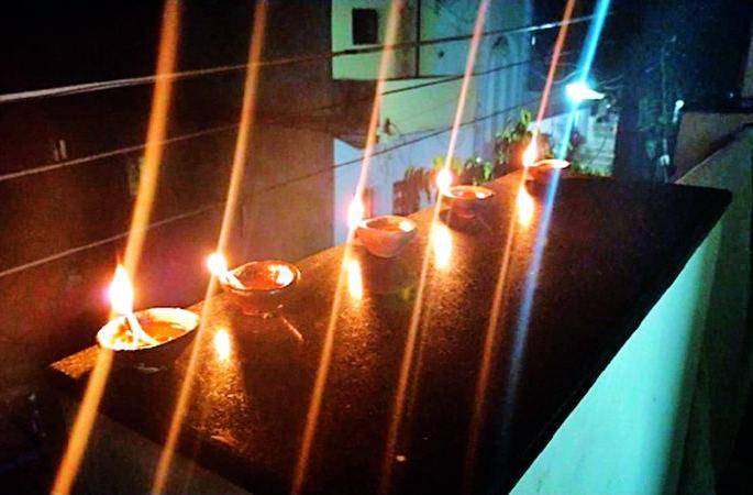 अर्जुनी-मोरगाव : पंतप्रधान नरेंद्र मोदी यांनी ५ एप्रिल रोजी देशवासियांना चलो आवो दिया जलाये असे आवाहन केले होते. रविवारी घराघरातील विद्युत दिवे बंद करून पणत्यांचा प्रकाश करण्यात आला. यावरून आम्ही सारे भारतीय एक आहोत असे एकात्मतेचे विराट दर्शन होताना दिसून आले.