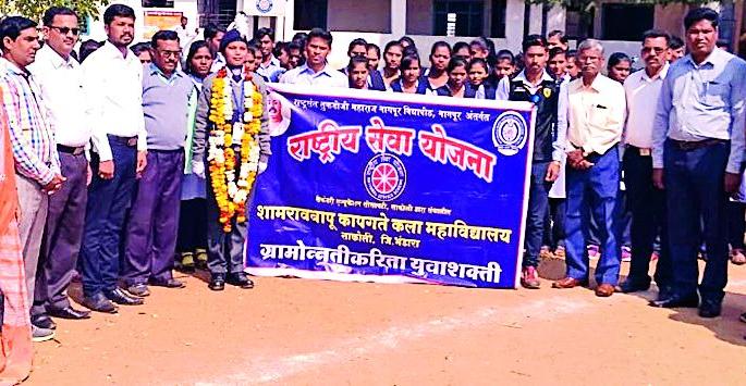 लोकमत न्यूज नेटवर्कसाकोली : दिल्ली येथील प्रजासत्ताक दिनाच्या राजपथावरील पथसंचालनात साकोली सारख्या शहरातील भुमेश्वरी पुरामकर हिने सहभागी होत महाराष्ट्राचे नेतृत्व केले. राज्यातून निवड झालेल्या सात विद्यार्थीनीत भुमेश्वरीने पथसंचालनात सर्वांचे लक्ष वेधले. दिल्लीवरुन तिचे साकोलीत आगमन होताच महाविद्यालयापर्यंत ढोलताशाच्या गजरात मिरवणुक काढण्यात आली.साकोली येथील शामराव बापू कापगते कला महाविद्यालयाची विद्यार्थीनी भुमेश्वरी पुरामकर हिची दिल्लीच्या प्रजासत्ताक परेडसाठी निवड झाली होती. राष्ट्रसंत तुकडोजी महाराज नागपूर विद्यापिठातील केवळ दोन विद्यार्थीनींचा यात सहभाग होता. ग्रामीण भागातून निवड झालेली राज्यातील एकमेव विद्यार्थीनी ठरली. दिल्ली येथे राजपथावर पथसंचालन करुन ती सोमवारी साकोलीत दाखल झाली. गावच्या लेकीने दिल्लीपर्यंत आपल्या महाविद्यालयाचा झेंडा फडकाविल्याने तिचे गावकऱ्यांनी तिचे कौतुक केले.तिला या परेडसाठी संस्थेचे अध्यक्ष व न.पा. विद्यालयाचे मुख्याध्यापक एम. झेड. शहारे यांनी सहकार्य केले. महाविद्यालयाचे प्रभारी प्राचार्य गणेश पाथोडे यांनी भुमेश्वरीचे स्वागत करुन महाविद्यालयासाठी हा गौरव असल्याचे सांगितले.यावेळी रासेयो कार्यक्रम अधिकारी प्रा. विजय दरवडे, प्रा. श्रावण कापगते, डॉ. चक्रधर बागडे, डॉ. अरविंद कटरे, प्रा. करुणा गायकवाड, धनेंद्र तुमसरे, भुपेंद्र कापगते, मोहनदास टेंभरे, बाबुलाल उपाध्य, गणेश बोरकर, विनोद वलथरे, कांचन बोरकर, संदीप घोडेश्वर, संजय लांजेवार उपस्थित होते.मान्यवरांसोबत सहभोजनभुमेश्वरी पुरामकर हिने दिल्ली येथे पथसंचालनात भाग घेतल्यानंतर मान्यवरांसोबत सहभोज घेतले. राष्ट्रपती, उपराष्ट्रपती, पंतप्रधान, मानद संसाधन विकास मंत्री, सामाजिक न्यायमंत्री, युवक कल्याण क्रिडा मंत्री यांच्यासोबतच राष्ट्रवादीचे नेते शरद पवार आणि मंत्रीमंडळातील मान्यवर उपस्थित होते.