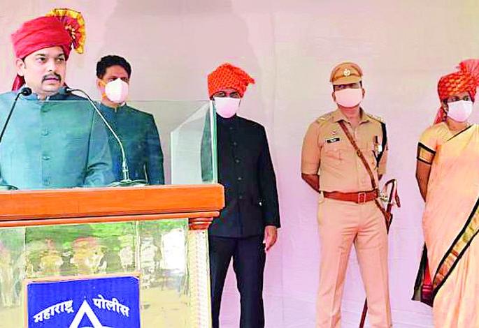 लोकमत न्यूज नेटवर्कभंडारा : कोरोना संसर्गाने संपूर्ण जगाला विळखा घातला असून गेले काही महिने कोरोनाशी आपला लढा सुरु आहे. कोरोनाला हरविण्यासोबतच अर्थचक्र व विकासाची गाडी रुळावर आणण्याचं आव्हान सुध्दा मोठं आहे. भंडारा जिल्हयात प्रशासन या दिशेने उत्कृष्ट काम करत आहे. आरोग्य शिक्षण, शेती व रोजगार या विषयाला प्राधान्य देण्यासोबतच नागरिकांचे जनजीवन पूर्वपदावर आणण्यासाठी शासन, प्रशासन कटिबध्द असल्याची ग्वाही पालकमंत्री डॉ. विश्वजीत कदम यांनी दिली.स्वातंत्र्यदिनाचा मुख्य ध्वजारोहण समारंभ जिल्हाधिकारी कार्यालय परिसरात साजरा करण्यात आला. यावेळी पालकमंत्र्यांच्या हस्ते ध्वजारोहण करण्यात आले, यावेळी ते बोलत होते.कार्यक्रमासाठी खासदार सुनिल मेंढे, जिल्हाधिकारी एम.जे. प्रदीपचंद्रन, मुख्य कार्यकारी अधिकारी भुवनेश्वरी एस., जिल्हा पोलीस अधिक्षक अरविंद साळवे, अप्पर जिल्हाधिकारी घनश्याम भूगावकर, परिविक्षाधिन जिल्हाधिकारी मिनल करनवाल, निवासी उपजिल्हाधिकारी शिवराज पडोळे, उपविभागीय अधिकारी संदीप भस्के यावेळी प्रामुख्याने उपस्थित होते. ध्वजारोहण होऊन पोलीसांनी पालकमंत्र्यांना मानवंदना दिली. तसेच जिल्हाधिकारी कार्यालय परिसरात पालकमंत्र्यांच्या हस्ते वृक्षारोपण करण्यात आले.आरोग्य, शिक्षण शेती व रोजगार हा आमच्या सरकारच्या प्राधान्याचा विषय आहे. भंडारा जिल्हयाचा विचार करता राज्याच्या तुलनेत येथे कोरोनाचा प्रादुर्भाव कमी असला तरी अद्यापही संकट पूर्णपणे टळलेले नाही. भंडारा जिल्हा प्रशासनाने केलेल्या उपाययोजनांमुळे जिल्हयात कोरोना प्रादुर्भाव रोखण्यात बऱ्यापैकी यश आले आहे. मात्र नागरिकांनी स्वयंशिस्त पाळत काळजी घेणे गरजेचे आहे, असे आवाहन पालकमंत्र्यांनी केले.माझी कन्या भाग्यश्री योजनेत भंडारा जिल्हयात ११४२ लाभार्थ्यांना लाभ देण्यात आला आहे. या योजनेत भंडारा जिल्हा प्रथम क्रमांकावर आहे. पोषण अभियानअंतर्गत जिल्हयात आधार सिडींगचे काम ९५ टक्के झाले आहे. यामध्येही जिल्हा प्रथम क्रमांकावर आहे. तसेच अस्मिता योजनेचा लाभ देण्यात जिल्हा अव्वल आहे. महिला व बाल विकास विभागाच्या या यशाबद्दल पालकमंत्र्यांनी अभिनंदन केले.शेती विकास व शेतकरी हा शासनाचा केंद्रबिंदू असून महात्मा जोतीराव फुले शेतकरी कर्जमुक्ती योजनेच्या माध्यमातून कर्जात असलेल्या जिल्हयातील २४ हजार ९४० शेतकऱ्यांना १३२.१० कोटी रुपये कर्जमाफीचा लाभ देण्यात आला आहे. कर्जमाफीपासून एकही पात्र लाभार्थी शेतकरी वंचित राहणार नाही, याची काळजी घेण्यात येणार आहे. खरीप हंगामासाठी जिल्हयातील ८१ हजार ९८९ शेतकºयांना ४०५ कोटी ७१ लाख रुपयांचे पिक कर्ज वाटप करण्यात आल्याचे त्यांनी यावेळी
