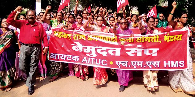 राज्य अंगणवाडी कर्मचारी कृती समितीच्या राज्यव्यापी बेमुदत संपाच्या आवाहनानुसार ११ सप्टेंबरपासून अंगणवाडी कर्मचारी संपावर आहेत.