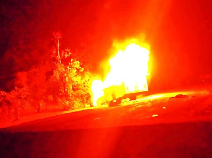 लाखांदूर येथे ट्रॅव्हल्स पेटविली