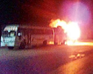 पवनी : स्थानिक टॅ्रव्हल्स एजन्सीमार्फत पवनी-नागपूर व नागपूर-पवनी लक्झरी बस दिवसभर ये-जा करतात. गुरुकृपा ट्रव्हल्सची लक्झरी बस क्र. एम एच ३१, सी क्यू ९३३३ नागपूरवरुन परत आल्यानंतर नेहमीप्रमाणे रात्री नागपूर मार्गाच्या कडेला उभी होती. पहाटेच्या सुमारास गस्तीवर असलेल्या पोलीस पथकास ट्रव्हल्सच्या इंजिनमधून आगीचे लोळ बाहेर पडताना दिसले. काही करण्यापूर्वीच बसने पेट घेतला व बस पूर्णत: पेटली.नागपूरला ये-जा करणाऱ्या खाजगी ट्रव्हल्सच्या बसेस जवाहर गेट समोर नागपूर रोडच्या कडेला उभ्या केलेल्या असतात. त्याच ठिकाणाहून बसेस सोडण्यात येताना उभ्या असलेल्या बसला पहाटे २ वाजताच्या सुमारास आग लागण्याची ही पवनीतील पहिलीच घटना आहे. त्यामुळे हा घातपात असेल का? असा विचार लोक करु लागले आहेत. बसला आग लागली तेव्हा रात्रीच्या गस्तीवर असलेल्या पोलीस उपनिरीक्षक धनश्री डाहाके व त्यांचे सहकारी पोलीस कर्मचाऱ्यांनी पोलीस ठाण्यात व संबंधितांना घटनेची माहिती दिली. नागरिक तातडीने घटनास्थळी पोहचले त्यांनी बसची आग विझविण्याचा प्रयत्न केला. पंरतू साध्या पध्दतीने आगीने विझविणे शक्य नसल्याने बसची राखरांगोळी झाली. मात्र वेळीच उपाययोजना केल्याने अनर्थ टळला. पालीकेचे अग्नीमशन वाहन अद्यापही कुलूपबंद असल्याने नागरिकांनी परिश्रम घेवून आग आटोक्यात आणली. त्यामुळे आजूबाजूला असलेले दुकाने व वाहने सुरक्षित राहिली. (तालुका प्रतिनिधी)
