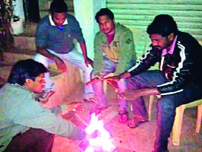 जिल्ह्यात सकाळपासूनच थंड वारे वाहत आहेत. या हवामानामुळे पहाटे दरम्यान कडाक्याची थंडी पडत असून दवबिंदू जमा होत आहेत. ग्रामीण भागासह आता शहरातही सायंकाळी शेकोट्या पेटविणे सुरू झाले आहे. रात्रीला शहरात थंडीमुळे वाहतुकीवर परिणाम जाणवत आहे. रस्ते निमर्नुष्य असतात. रात्री, पहाटेदरम्यान वाहनांची संख्या मार्गावर रोडावलेली दिसून येते. या थंडीमुळे नागरीकांची दिनचर्या सकाळी उशिरा सुरू होत आहे. शहरात ऊनी कापड घेण्यासाठी दुकानांमध्ये नागरीकांची झुंबळ होत आहे. थंडीमुळे नागरीकांच्या आरोग्यावर परीणाम झाला आहे. आज दिवसभर नागरिकांनी थंडीच्या बचवासाठी घोंगडे, स्वेटर, मफलर, कानटोपी शाल आदी उनी कापडांचा वापर केल्याचे दिसून आले़