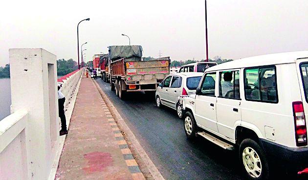 आठवडाभरापासून भंडारा येथील वैनगंगा नदीच्या मोठ्या पुलाच्या डागडूजीचे काम सुरू आहे. त्यामुळे राष्ट्रीय महामार्ग क्रमांक ६ वरुन आवागमन करणाऱ्या करणाऱ्या वाहनधारकांसह प्रवाशांना एक ते दिड तास कारधा ते भंडारा हे एक किलोमीटर अंतर कापण्यासाठी लागत आहे.