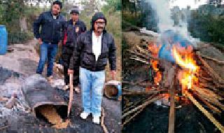 पांजराबोरी येथील प्रकार : दोनदा धाड पडूनही परिस्थिती जैसे थे, राज्य उत्पादन शुल्क विभागाची कारवाईमोहाडी : तालुक्यातील पांजराबोरी हे गाव दारुबंदी गाव म्हणून घोषित करण्यात आले. मात्र काही व्यक्ती आजही दारु बनविण्याचा व्यवसाय करीत असून त्यांना स्थानिक पोलिसांचा वरदहस्त असल्यानेच त्यांचा धंदा जोमात सुरु असल्याचा आरोप गावकऱ्यांनी केला आहे. भंडारा पोलिसांनी येथे दोनदा धाड टाकली. त्यांचे दारु बनविण्याचे साहित्य नष्ट करून तीन व्यक्तींवर गुन्हा नोंदविला. स्थानिक पोलिसांना या बाबींची माहिती असूनही त्यांनी अजूनपर्यंत कारवाई केलेली नाही. त्यामुळे दारुचे अवैध धंदे करणारे व स्थानिक पोलिसात साठगाठ असल्याचा संशय गावकऱ्यांनी व्यक्त केला आहे.पांजरा ते बोरगाव रस्त्यापासून २०० मिटर अंतरावर नाल्याच्या काठावर दारु बनविण्याच्या दोन मोठ्या दारुभट्या आहेत. येथे तयार होणारी मोहफुलाची दारु करडी क्षेत्रातील गावात तसेच भंडारा तालुक्यातील कोका व तिरोडा तालुक्यातील सितेपार येथे पुरवठा केली जाते. दारु काढण्याचे कार्य पहाटे २ ते ३ वाजता सुरु होते. भल्या पहाटे तयार झालेली दारु गावात वितरीत करण्यात येते. ३ जानेवारीला भंडारा गुन्हे शाखेच्या पथकाने पांजरा बोरी येथील दारुभट्टीवर धाड टाकली असता मुख्य आरोपी पळून जाण्यात यशस्वी झाले. आरोपींवर गुन्हा दाखल करण्यात आला. त्यानंतर १२ जानेवारीला पुन्हा भंडारा पोलिसांनी पहाटेच्या सुमारास या हातभट्यांवर धाड टाकली. उपविभागीय पोलीस अधिकारी संजय जोगदंड यांच्या मार्गदर्शनात मिलींद कोटांगले, अशोक गिरडकर, सूरज शिंदे, प्रदीप गळदे यांच्या चमूने हातभट्टीची दारु तयार करण्याचे साहित्य नष्ट केले. तसेच दोन व्यक्तीवर गुन्हे नोंद करण्यात आले. करडी क्षेत्रात पांजरा, देव्हाडा, नरसिंहटोला, मुंढरी या चार गावात हातभट्टीची दारु काढण्याचे कारखाने आहेत. हे अवैध कारखाने नदी काठावरच तयार करण्यात आले आहेत. करडी क्षेत्रातील काही गावे दारुबंदीमुक्त गावे झाले आहेत. मात्र काही दारुभट्टीवाल्यामुळे दारुबंदीची योजना फसण्यााच्या मार्गावर आहे. त्यामुळे अनेक महिलांनी व जागृत नागरिकांनी त्या हातभट्या कायमच्या बंद करण्याची मागणी केलेली आहे.(शहर प्रतिनिधी)धोका होण्याची शक्यतागावठी दारु तयार करण्यासाठी मोहफुलाला सडविण्यात येते. त्याला फास म्हणतात. हा फास लवकर यावा यासाठी त्याच्यात युरिया खत, सदासावलीचा पाला, गुळ, कडूनिंबाचा पाला सोडण्यात येतो. एखादवेळी याचे प्रमाण कमी अधिक झाल्यास ही दारु पिणारा अंध होऊ शकतो किंवा त्याचे प्राणही जाऊ शकते.१ लाख २३ रुपयांचा मुद्देमाल जप्तभंडारा : मकर संक्रांत सणाच्या निमित्ताने अवैधरित्या मद्याची निर्मिती, 