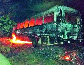 लाखांदूर येथे ट्रॅव्हल्स पेटविली