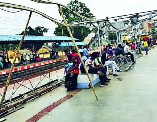 भंडारा : पावसाने भिजत प्रवाशांना करावी लागते गाडीची प्रतीक्षा
