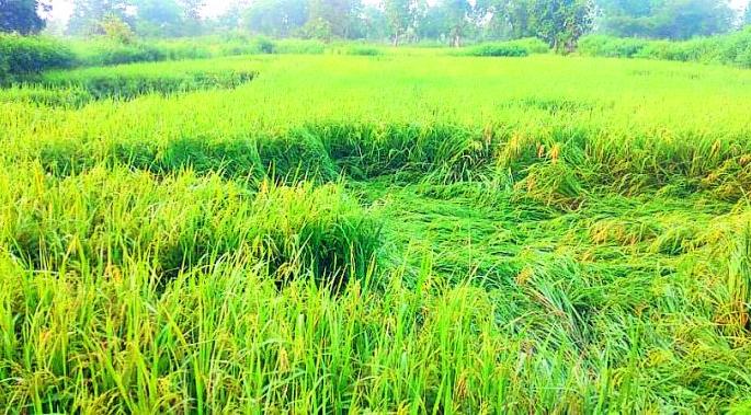 जिल्ह्यात मृग नक्षत्रातील पावसानंतर शेतकऱ्यांना आकाशाकडे पाहण्याची वेळ आली हाेती. पावसाने दडी मारल्याने राेवण्या रखडल्या हाेत्या. मध्यंतरी हलक्या सरी बरसत हाेत्या. सिंचनाची सुविधा असलेल्या शेतकऱ्यांनी राेवणी केली. मात्र, बहुतांश राेवणी रखडली हाेती. दरम्यान झालेल्या पावसाने राेवणी पूर्ण झाली; परंतु त्यानंतर पुन्हा पावसाने पाठ फिरविली. यामुळे शेतकरी पुन्हा चिंतेत पडला. १० सप्टेंबरनंतर पावसाला पुन्हा प्रारंभ झाला. मात्र, या पावसाचा फटका हलक्या धानाला बसला. लाेंब्या आलेला धान जमिनीवर झाेपला. त्यामुळे शेतकऱ्यांच्या चिंतेत भर पडली. गत आठवड्यात तर माेहाडी आणि तुमसर तालुक्यात अतिवृष्टी झाली. या शेवटच्या चरणातील पावसाने सरासरी गाठली. हवामान खात्याने पावसाचा अंदाज वर्तविला आहे. धान काढणीला आला असताना पाऊस काेसळत असल्याने नुकसान हाेण्याची माेठी भीती आहे.
