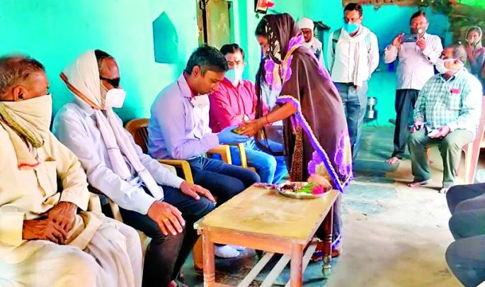 मुखरु बागडेलोकमत न्यूज नेटवर्कपालांदूर : संवेनशील मनाचा अधिकारी असला की प्रशासनाच्या रुक्षपणातही माणुसकीचा झरा वाहताे. याचा प्रत्यय भाऊबीजेच्या दिवशी आला. साक्षात जिल्हाधिकारी शेतकरी आत्महत्याग्रस्त कुटुबाच्या घरी पाेहाेचले. शेतकरी विधवानी जिल्हाधिकाऱ्यांना ओवाळले. तर ओवाळणी म्हणून जिल्हाधिकाऱ्यांनी सर्वताेपरी सहकार्य करण्याचे आश्वासन दिले. कर्ता पुरुष गमावल्यानंतर काेसळलेल्या संकटाच्या काळात आता भाऊ म्हणून साक्षात जिल्हाधिकारी म्हणून पाठीशी उभे झाले. सततची नापिकी आणि कर्जाचा डाेंगर या दाेन खचलेल्या शेतकऱ्यांनी टाेकाचा मार्ग स्विकारत आत्महत्या केली. लाखनी तालुक्यातील डाेंगरगाव साक्षर येथील सुखदेव पंढरी फुंडे, मुरमाडी तुपकर येथील नारायण पंढरी भाेयर आणि राजेश नामदेव काेरे या शेतकऱ्यांनी आत्महत्या केली. त्यांच्या मागे कुटुंबाची ओढाताण सुरु झाली. कुटुंबाचा गाढा ओढताना त्रेधा उडू लागली. आप्तस्वकीयांच्या आधाराने शेतकरी आत्महत्याग्रस्त कुटुंबातील विधवा संसराचा गाढा ओढू लागल्या आहे. दिवाळीसारखा सणही या कुटुंबाच्या नशीबी नव्हता. अशातच संवेदनशील मनाचे जिल्हाधिकारी संदीप कदम भाऊबीजेच्या दिवशी थेट डाेंगरगाव साक्षर येथील सुखदेव फुंडे यांच्या घरी पाेहाेचले. जिल्हाधिकारी दारात पाहून सर्व अचंबित झाले. भाऊबीजेला आलेल्या जिल्हाधिकाऱ्यांना वंदना सुखदेव फुंडे यांनी ओवाळणी घातली. नियमांच्या अधिन राहून माणुसकीच्या नात्याने जे शक्य हाेईल ते सहकार्य करण्याचे जिल्हाधिकाऱ्यांनी आश्वासन दिले. यावेळी गावकऱ्यांसाेबत चर्चा केली. पूरग्रस्त शेतकऱ्यांना सानुग्रह अनुदान द्यावे, तुडतुड्याने झालेल्या नुकसानीची मदत द्यावी, अशी मागणी त्यांनी जिल्हाधिकाऱ्यांकडे केली. त्यांच्या समस्यांचीही दखल जिल्हाधिकाऱ्यांनी घेतली. यानंतर मुरमाडी तुपकर येथील नारायण भाेयर आणि राजेश काेरे यांच्या घरी पाेहाेचले. तेथेही पुष्पा नारायण भाेयर आणि रेवता राजेश काेरे यांनी जिल्हाधिकाऱ्यांना भाऊबीजेचे औक्षवण केले. संवेदनशील मनाचा जिल्हाधिकाऱ्यांनी शेतकरी आत्महत्या ग्रस्त कुटुंबात भाऊबीज साजरी करुन एक नवा आदर्श निर्माण केला. यावेळी निवासी उपजिल्हाधिकारी शीवराज पडाेळे, समाजकल्याण उपायुक्त आशा कवाडे, तहसीलदार मलीक विराणी, सरपंच ताराचंद निरगुडे, तालुका कृषी अधिकारी पद्माकर गिदमारे, राकेश पंधरे आदी उपस्थित हाेते.