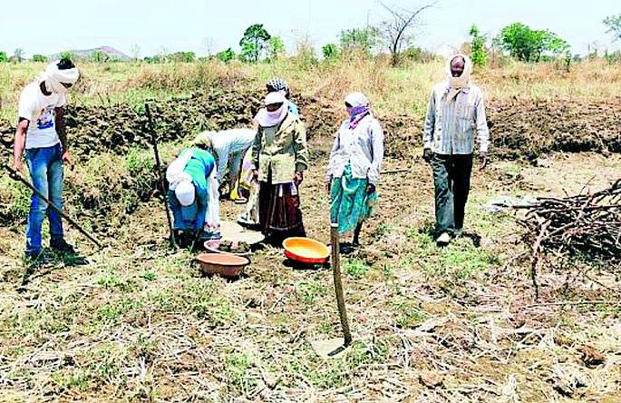 लोकमत न्यूज नेटवर्कभंडारा : कोरोना संसर्गाचा प्रादूर्भाव वाढल्याने ग्रामीण भागात मजुरांना रोजगार उपलब्ध करुन देण्यासाठी भंडारा तालुका कृषी विभागाच्या वतीने तालुक्यांतर्गत विविध ठिकाणी रोहयो कामांना सुरुवात करण्यात आली आहे.तालुक्यातील खराडी, चिखली, मांडवी, खमारी, सोनुली, मोहदुरा, माटोरा, हत्तीडोई, खुर्शीपार, आमगाव, राजेगाव, गुंथारा, धारगाव, राजेदहेगाव, डोडमाझरी, निमगाव आदी गावात रोहयो कामांना सुरुवात झाली आहे. यावेळी मजुरांना फळबाग लागवड योजनेअंतर्गत तसेच रोहयोच्या विविध कामांतर्गत मजुरांना रोजगार उपलब्ध करुन देण्यात आला आहे. गावातच काम उपलब्ध होत असल्याने मजुरात समाधान व्यक्त होत आहे. पहेला मंडळ कार्यालयांतर्गत असणाऱ्या निमगाव येथे रोहयो कामांतर्गत मजुरांना कृषी सहायक एस. एच. केदार यांनी कोरोना बाबत जनजागृती केली.भंडारा तालुका कृषी अधिकारी अविनाश कोटांगले यांच्या मार्गदर्शनात तालुक्यात विविध गावात कामे सुरु आहेत. शेतकऱ्यांना उन्नत शेती, समृध्द शेतकरी योजनेंतर्गत गावनिहाय मार्गदर्शन करण्यात येत असून कृषी यांत्रीकीकरण योजनेची मुदत १५ मे असल्याने शेतकºयांना आवाहन करण्यात येत आहे. खरीप हंगामासाठी तालुक्यातील कृषी सहाय्यकांमार्फत रोहयो कामासोबतच शेतकरी, शेतमजुरांना बदललेली पीकपद्धती व बीजप्रक्रियेची प्रात्याक्षिके दाखविण्यात येत आहेत.