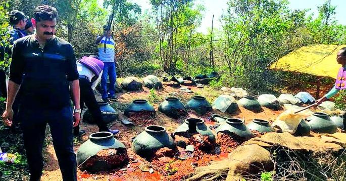 खासगी बोटीने पोलीस पोहोचले बेटावर- वैनगंगा नदीच्या पाणी पातळीत मोठ्या प्रमाणात वाढ झाली आहे. त्यामुळे या बेटावर पोहोचणे कठीण झाले आहे. याचाच फायदा घेत, येथे दारू गाळली जात होती. पोलिसांनी येथील रनिंग हातभट्टीवर धाड मारण्यासाठी खासगी बोटी घेतल्या. लाइफ जॅकेट घालून पोलीस बेटावर पोहोचले. त्या ठिकाणी असलेल्या झुडुपी वनस्पतीच्या आधारे दारू गाळली जात होती. या धाडीमुळे दारू गाळणाऱ्यांचे धाबे दणाणले आहेत.