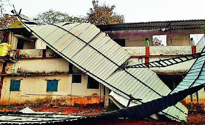 ठळक मुद्देरबी पिकाचे नुकसान : वादळात महाविद्यालयाचे छत उडाले, शेतकरी धास्तावले