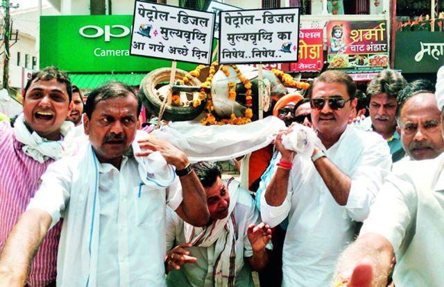 पेट्रोल, डिझेलच्या किंमतीमध्ये सातत्याने वाढ होत आहे. जीएसटीएस व सरकारच्या चुकीच्या करप्रणालीमुळे सर्वसामान्य नागरिक त्रस्त झाला आहे. आम्ही सत्तेत असताना पेट्रोल, डिझेलचे दर प्रती बॅरेल १४० रुपये होते. आता हे दर ८० प्रती बॅरेल असूनही पेट्रोलचे दर प्रती लिटर ८६ रुपयांवर गेले आहे. त्यामुळे सामान्यांवर बोजा वाढत आहे. याचा निषेध नोंदविण्यासाठी ही प्रतिकात्मक प्रेत यात्रा व सायकल रॅली काढली.