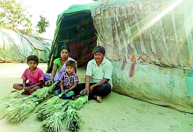 आतापर्यंत राहण्यासाठी जमिनीचे पट्टे मिळाले नाही. गवताच्या झोपडीत राहतात पण वादळ पावसाने या झोपडी उडून जातात.