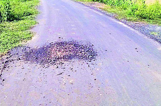 बांधकामाच्या तीन महिन्यातच पडले राज्य मार्गावर खड्डे