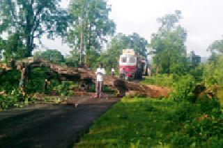 तुमसर-कटंगी मार्गावरची घटना : वृक्ष पडल्याने चारचाकी बचावली, बांधकाम व वनविभागाचे दुर्लक्ष तुमसर : तुमसर-कटंगी आंतरराज्यीय महामार्गावर शुक्रवारी मध्यरात्री एक विशालकाय वृक्ष उन्मळून पडल्याने सात तास वाहतूक ठप्प पडली. नशिब बलवत्तर म्हणून एक चारचाकी वाहन थोडक्यात बचावले. ही घटना मध्यरात्री ११.३० वाजता घडली.तुमसर-कटंगी आंतरराज्यीय महामार्ग तुमसर तालुक्यातून सातपुडा पर्वत रांगामधून जातो. महामार्गाच्या दोन्ही बाजूला जुनी मोठी झाडे आहेत. अनेक ठिकाणी ती रस्त्यावर वाकलेल्या स्थितीत आहेत.झाडाच्या खालची माती पावसाळ्यात वाहून गेल्याने झाडांची मूळ उघडी पडली आहेत. गोबरवाही ते सुदंरटोला रस्त्यावर एक जुने महाकाय वृक्ष शुक्रवारी मध्यरात्रीच्या सुमारास आंतरराज्यीय महामार्गावर उन्मळून पडले. या मार्गाने जाणारी एक चारचाकी वाहन या अपघातातून थोडक्यात बचावली. अन्यथा अनर्थ घडला असता. हा आंतरराज्यीय महामार्ग अत्यंत धोकादायक आहे. रस्त्यालगतच घनदाट जंगल आहे. शेकडो वर्षाची जूनी झाडे फांद्या रस्त्यावर अंथरलेल्या दिसतात. नाकाडोंगरी तथा तुमसर वनपरिक्षेत्राच्या सीमेत हे जंगल आहे. पहाटे चिखलाचे उपसरपंच दिलीप सोनवाने, माजी सरपंच किशोर हुमणे, पठाणसह सामाजिक कार्यकर्त्यांनी जेसीबीच्या मदतीने रस्त्यावरील वृृक्ष दूर केले. वनविभागाचे कर्मचारीही उपस्थित होते. सुरक्षित प्रवाशाची हमी प्रवाशांना देण्याची जबाबदारी सार्वजनिक बांधकाम विभाग तथा वनविभागाची आहे. परंतु याकडे येथे दुर्लक्ष होत आहे. (तालुका प्रतिनिधी)