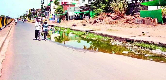राष्ट्रीय महामार्गावरील नाल्या घाण पाण्याने तुंबल्या