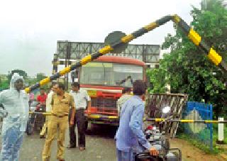 तुमसर : अज्ञात चारचाकी वाहनाने देव्हाडी (तुमसर रोड) येथील रेल्वे फाटकाला धडक दिली. यात फाटकाचे दोन तुकडे झाले. यामुळे तुमसर-गोंदिया राज्य महामार्गावर सुमारे दोन तास वाहतूक बंद पडून वाहतूकीची प्रचंड कोंडी झाली. ही घटना शुक्रवारी दुपारी ३ वाजताच्या सुमारास घडली. अज्ञात वाहनाच्या विरोधात रेल्वे प्रशासनाने गुन्हा दाखल केला आहे. मुंबई-हावडा रेल्वे मार्गावर देव्हाडी (तुमसर रोड) येथे रेल्वे फाटक क्र. ५३२ आहे. शुक्रवारी दु. ३ वाजता येथे वाहतुकीची प्रचंड कोंडी झाली होती. यात एका अज्ञात वाहनाने रेल्वे फाटकाला धडक दिली. यात फाटकाचे दोन तुकडे झाले. यामुळे सुमारे दोन तास वाहतुक ठप्प झाली. फाटकाच्या दुतर्फा वाहनांच्या रांगा लागल्या होत्या. रेल्वे प्रशासनाने शर्थीचे प्रयत्न करुन वाहतूक सुरळीत सुरु केली. (तालुका प्रतिनिधी)