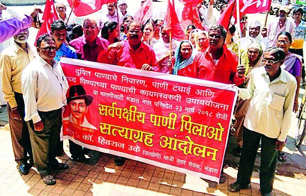 आॅनलाईन लोकमतभंडारा : ६७ कोटी ७९ लाख रुपयांची नवीन पाणी पुरवठ्याची योजना आणि दूषित पाण्याच्या निवारणासाठी तात्कालीन उपाययोजना म्हणून १० ठिकाणी आरो लावण्याचे काम दोन महिन्यात पूर्ण करू, असे आश्वासन सर्वपक्षीय शिष्टमंडळात समोर नगराध्यक्ष सुनिल मेंढे यांनी भाकपचे जिल्हासचिव व माजी नगर सेवक हिवराज उके यांना दिले.दूषित पाण्याचे निराकरण, शुद्ध पिण्याच्या पाण्याची कायमस्वरूपी उपाययोजना व इतर विषयांना घेवून भारतीय कम्युनिस्ट पक्षाचे जिल्हा सचिव व माजी नगरसेवक हिवराज उके यांच्या नेतृत्वात सर्वपक्षीय पाणी पिलाओ सत्याग्रह आंदोलन २३ मार्चला राणा भवन भंडारा येथून मोर्चा काढून करण्यात आला व मोर्चा नगर परिषदेवर नेण्यात आला.याप्रसंगी नगर परिषदेसमोर काँग्रेसचे धनराज साठवणे, भारिप बहुजन महासंघाचे चरणदास मेश्राम, डॉ. नितीन तुरस्कर, सदानंद इलमे, वामनराव चांदेवार, गजानन पाचे, हिवराज उके यांचे मार्गदर्शन झाले व पाणी प्रश्नासोबत विविध मागण्यांचे निवेदन देवून शिष्टमंडळाद्वारे नगराध्यक्षा सोबत चर्चा करण्यात आली.त्यात दोन महिन्यात नवीन पाणी पुरवठ्याची योजना मंजुर करू, १० ठिकाणी आरो लावून शुद्ध पाणी देवू, नदी शुद्धीकरणासाठी एरिगेशन विभागाला स्मरणपत्र लिहू तसेच नागनदीच्या घाणपाण्यावर ६० टक्के शुद्धीकरणाचे काम सुरू आहे, आवास योजनेच्या डीपीआरचे काम सुरू असून ५०० घरांचे अप्रुअल मिळाल्यास काम सुरू करू, फेरीवाला धोरणाच्या अंमलबजावणी साठी समिती स्थापन केली असून तात्काळ कार्यवाही करण्यात येईल, छोटा बाजार शॉपिंग सेंटरचे पुननिर्माण लवकरच करण्यात येईल, भूमीगत गटार योजना व घनकचरा व्यवस्थापनाची डीपीआर तयार झाले आहे आणि पुढीलवर्षी १५ ते २० टक्के घरटॅक्समध्ये वाढ करू, असे आश्वासन दिले गेले. नगराध्यक्षासोबत अभियंता जामूणकर, उपाध्यक्ष आशु गोंडाने, माजी उपाध्यक्ष रूबी चढ्ढा होते.
