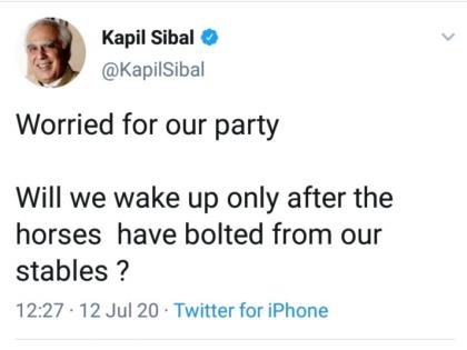 सचिन पायलट यांच्या बंडाच्या आगेमागे काही कॉंग्रेस नेत्यांनी केलेली वक्तव्ये पुरेशी सूचक आहेत. सचिन पायलट यांनी बंडाचा झेंडा फडकवल्यावर कॉंग्रेसचे ज्येष्ठ नेते आणि नेहरू-गांधी कुटुंबाशी एकनिष्ठ असलेले कपिल सिब्बल यांनी टिष्ट्वटरच्या माध्यमातून व्यक्त केलेली प्रतिक्रिया भुवया उंचावणारी होती. तबेल्यातून सगळे घोडे पसार झाल्यानंतरच आपल्याला जाग येईल का, असा प्रश्न त्यांनी त्या टिष्ट्वटमधून उपस्थित केला होता. या प्रश्नाचा रोख गांधी कुटुंबाकडे होता, हे स्पष्ट आहे.