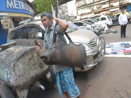 ते म्हणाले, आम्ही एरिया वाटून घेतलेत. दोघं-दोघं हे काम करतो. बावडीवरून पाणी भरून हे ढकलगाडीवरचे टँकर ठरावीक जागी लावून ठेवायचे. मग मशकमध्ये पाणी भरायचं आणि जागोजागी पिंपं भरून यायची. जैरीबुलच्या मते मशकमध्ये पाणी थंड राहतं, म्हणून त्यांच्याकडून लोक पाणी घेतात. जैरीबुल बिहारचे होते, मुंबईत जगणं महाग असल्यामुळं सगळं कुटुंब गावाकडेच ठेवलंय. पिढ्यानपिढ्या दुसरा कोणताच उद्योग घरी केला नसल्यामुळे, त्यांनी हेच काम स्वीकारलं.