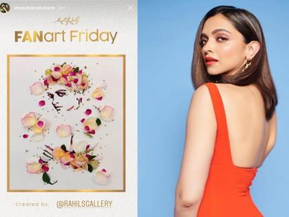 शुक्रवारच्या या फॅन आर्टसाठी दीपिकाने राहिल गॅलरीने फुललेल्या फुलांचा फोटो शेअर केला आहे. गुलाबी आणि पिवळ्या फुलांच्या पाकळ्यापासून बनविलेली ही एक अतिशय सुंदर कलाकृती आहे. हे रेखाटन पाहताक्षणीच आपले लक्ष वेधून घेते, जसे त्याने दीपिकाचे देखील लक्ष वेधले आहे. हे रेखाटन खूपच अनोखे आहे आणि म्हणूनच अभिनेत्रीने हे आपल्यासोबत शेअर केले आहे.