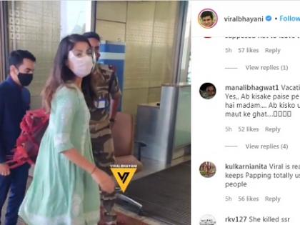 आत्ताही तेच़ रिया एअरपोर्टवर दिसली आणि सुशांतच्या चाहत्यांचा राग अनावर झाला़ ती बेलवर आहे, शहर सोडून कशी जाऊ शकते? असा सवाल एका युजरने केला. तर अन्य एका युजरने यापुढे जात, अतिशय वाईट पद्धतीने रियाला ट्रोल करण्याचा प्रयत्न केला. आता कुणाच्या पैशावर जातेय मॅडम? असा सवाल या युजरने केला.