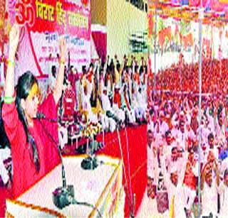 हिवराआश्रम (ता मेहकर, जि. बुलडाणा) : महाराष्ट्रात सर्वांत जास्त संत निर्माण झाले. संतांचे वास्तव्य मोठय़ा प्रमाणात असूनदेखील आज महाराष्ट्रात मोठय़ा प्रमाणात दुष्काळ पडताना दिसत आहे. याचे कारण गोहत्याचे प्रमाण; महाराष्ट्रात मोठय़ा प्रमाणात आहे. गोहत्या बंद करुन रामराज्य आणा, असे आवाहन बालयोगी सरस्वती यांनी विश्व हिंदू परिषदेच्या सुवर्ण जयंती महोत्सवादरम्यान केले.गोहत्यासंबंधीचे विचार आज संत महात्म्यांनादेखील मंचकावरून व्यक्त करण्याची वेळ आलेली आहे. यासाठी गोवंश वाढवा, गौशाळा काढा. गोहत्या टाळल्यास येथील भूमी स्वर्ग बनेल, असेही बालयोगी सरस्वती यांनी सांगितले. हिवराआश्रम येथील विवेकानंद कृषी महाविद्यालयाच्या प्रांगणात हिंदू संमेलनास जमलेल्या हजारो हिंदू बांधवांच्या समोर त्या बोलत होत्या. कार्यक्रमाच्या अध्यक्षस्थानी विवेकानंद आश्रमाचे संस्थापक अध्यक्ष शुकदास महाराज होते, तर परम् श्रद्धेय बालयोगी सरस्वती, महामंडलेश्वर अखिलेश महाराज गिरी, दादासाहेब वेदक यांची प्रमुख उपस्थिती होती. धर्माचे रक्षण करा, धर्म आपले रक्षण करेल. आज धर्माच्या रक्षणार्थ कार्य करण्याची वेळ आली असून, आज धर्मांतर नाही, तर घर वापसी कार्य होत असल्याचे अखिलेश महाराज गिरी यांनी सांगितले. ५0 वर्षांपासून विश्व हिंदू परिषदेच्या कार्याचा आढावा व धर्मासंदर्भात पुढील करावयाच्या कार्यासंबंधीचे विवेचन त्यांनी केले. गोरक्षणाच्या कार्याबद्दल मेहकर येथील विजय पवार यांचा बालयोगी सरस्वती यांच्या हस्ते तलवार भेट देऊन सत्कार करण्यात आला. या कार्यक्रमाला परिसरातील गावांतून सुमारे ५0 दिंड्यांनी आपली हजेरी लावली होती.